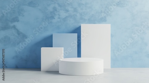 Minimalist White and Blue Geometric Display Platforms