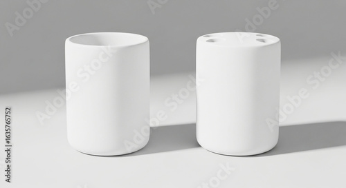 tumbler, white, ceramic, minimalist, modern, clean, simple, contemporary, elegant, sleek, sophisticated, home decor, interior design, bathroom, vanity, sink, counter, organisation, storage, residential, apartment, house, studio shot, still life, isolated, shadow, light, bright, design, decor, essential, household, well-being, dental care, hygiene, porcelain