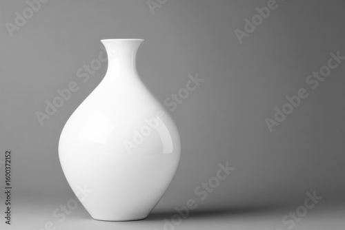 Minimalist white ceramic vase with smooth surface placed on neutral background. Simple modern decor object for contemporary interior display.