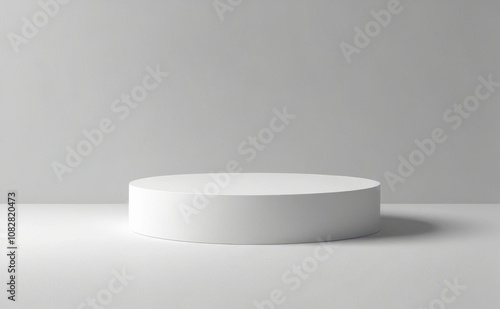 Minimalist white circular pedestal against a gray background, showcasing simplicity for design purposes