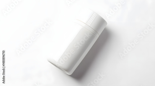 Minimalist white cosmetic container on a clean background, ideal for skincare or beauty products.