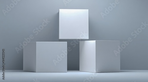 Minimalist White Cube Display: Abstract Geometric Composition for Product Showcase and Modern Design Presentation