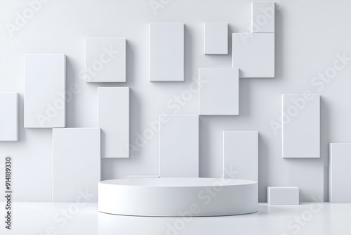 Minimalist White Geometric Background with Cylinder Platform for Product Display