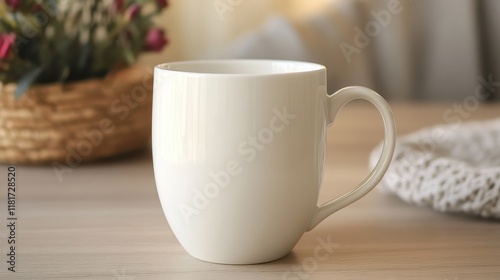 Minimalist White Mug on Light Wooden Table