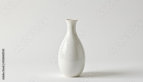 minimalist white porcelain vase with narrow neck and flared base, smooth glossy finish, isolated object with no inscriptions or markings, clean, minimalistic design without any branding or text