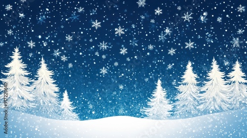christmas, winter, snow, snowflake, vector, landscape, forest, christmas tree, blue, fir, night, nature, season, illustration, holiday, scene, new year, snowflake, christmas, tree, card, tree, pine, banner, pine tree, silhouette, hill, blue skies, minimalist, cold, scenery, white, seasonal, outdoors, tranquil, peaceful, simple, design, background, serene, frost, artistic