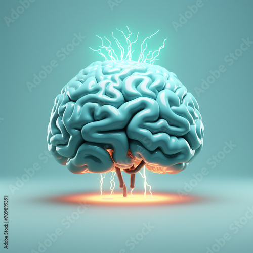 Minimalistic 3D illustration of brain with lightning attacking it created with Generative Ai
