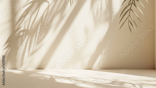 minimalistic abstract gentle light beige background ,light and intricate shadow from the window.