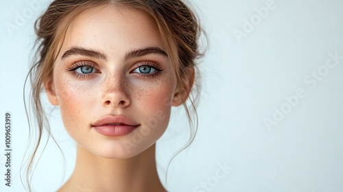 portrait, lovely, young, woman, isolated, white, background, beauty, elegant, natural, face, stylish, confident, attractive, pretty, charming, feminine, bright, cheerful, graceful, happy, soft, expression, pure, radiant, smooth, white background, natural beauty