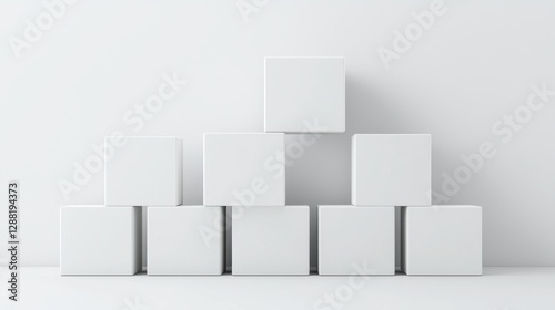 Minimalistic arrangement of white cubes on a white background for creative design and visual concepts.