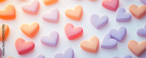 Minimalistic background with hearts pattern in pink, peach, red and lavender colors. Love and Valentines Day concept.
