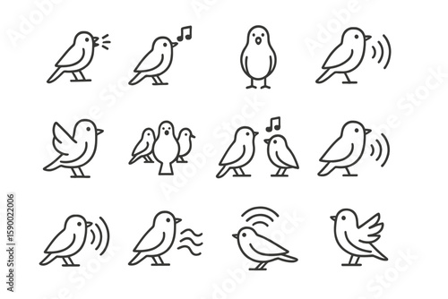 bird, icon, set, sound, movement, minimalistic, symbol, graphic, collection, simple, artistic, monochrome, abstract, design, silhouette, vector, chirping, singing, wing, flight, flock, perched, musical, nature, beak, feather, tweet, decorative, line, elegant