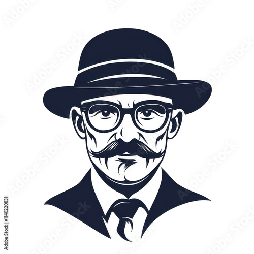 Minimalistic black outline urban hipster gentleman with mustache and glasses illustration on transparent background, Father's day concept design