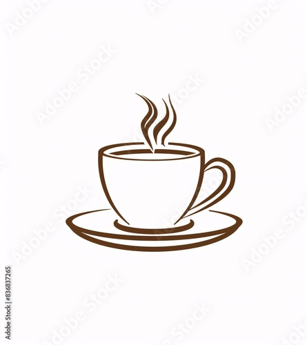 hot drink, cup, steam, vector, logotype, icon, white, background, simple, line, art, brown, minimalistic, design, bold, outline, shape, low, detail, elegant, saucer, isolated, flat, illustration, solid, colours, profile, view, smoke, rising, no, text, shadow, fill, colours, clean, line, graphic, shading, gradient