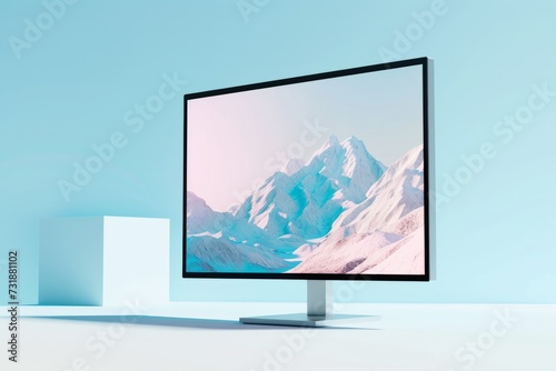 minimalistic, monitor, design, mountain, screensaver, modern, technology, display, screen, elegant, simplicity, desktop, computer, sleek, contemporary, office, workspace, electronic, computing, digital, graphic, tranquil, peaceful, gradient, ambient, interior, furniture, stylish, flatscreen, presentation, innovation, silver
