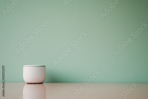 Minimalistic design showcases white pot against serene mint back