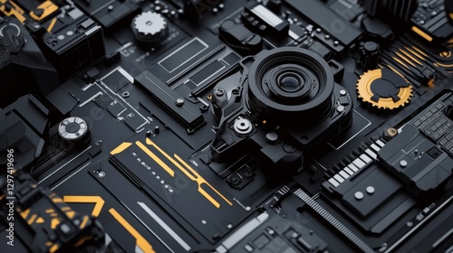 minimalistic, film, production, visual, representation, patterned, detail, black, orange, technology, abstract, design, background, artistic, component, layout, creativity, industry, equipment, photo, modern, studio, concept, aesthetic, digital, art, media, contemporary, innovation, style, contraption, optic, mechanic, system, geometric, element, circuit, structure, machine, craftsmanship, closeup, texture, composition, presentation, theme, dynamic