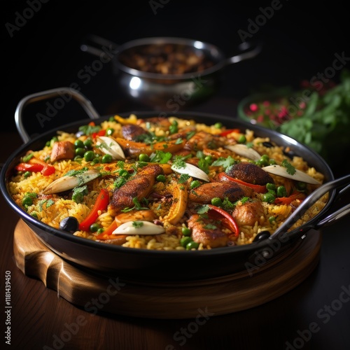 paella, culinary arts, food, vegetable, meat, pan, meal, dinner, dish, chicken, vegetable, cookery, cooking, healthy, rice, lunch, white, seafood, beef, delicious, hot, green, onion, stew, fried, plate