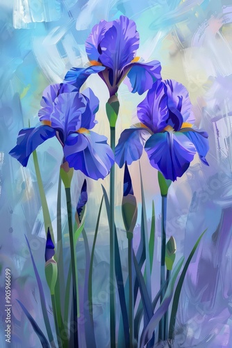 iris, iris, illustration, whimsical, minimalistic, soft, beautiful, flower, plant, nature, garden, bouquet, floral, blossom, purple, beauty, bloom, leaf, flora, decoration, art, spring, design, card, drawing