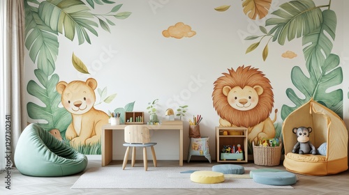 Minimalistic jungle mural with cute animals enhancing a child's room decor