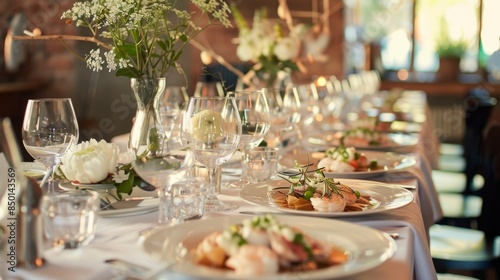 table, dinner, decor, banquet, luxury, plate, eatery, white, celebration, napkin, elegance, tablecloth, lunch, setting, wedding, event, drink, meal, service, silverware, interior, food, cutlery, party, glasses, catering, wine, dish, silver, reception