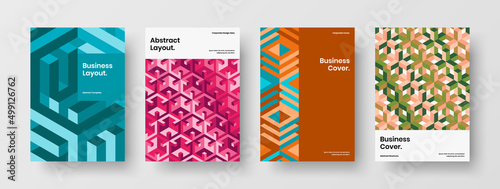 Minimalistic postcard vector design concept collection. Premium geometric tiles company identity layout set.
