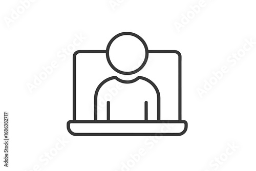 user, laptop, monitor, minimalistic, outline, icon, web, graphic, design, banner, social, network, card, online, communication, digital, cartoon, illustration, remote, work, call, video, meeting, education, e-learning, workspace, profile, avatar, technology, device, connection, cyberspace, computer, desktop, training, conference, chat, messaging, cloud, software, business, interface