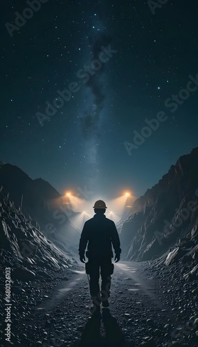 Mining worker silhouette under starry night sky career path and industrial safety concept