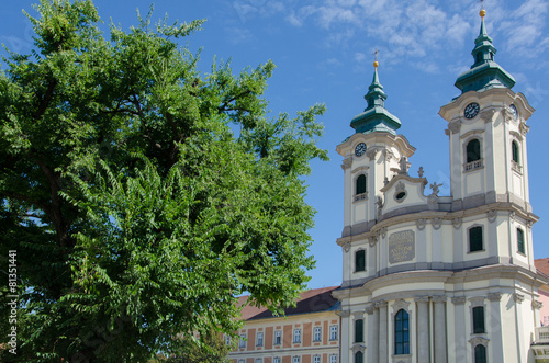 cross, town square, magyar, building, hungary, architecture, religion, eastern, europa, blue skies, city landscape
