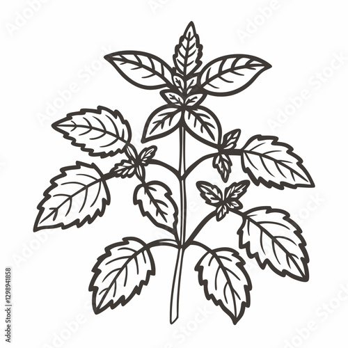 Mint Plant Outline Drawing for Herbal Illustration and Botanical Design