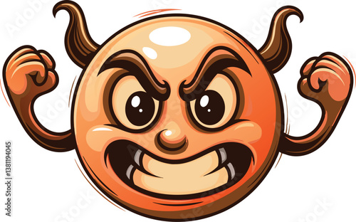Mischievous Cartoon Devil Character with Sinister Smile and Horns – Bold Red Illustration