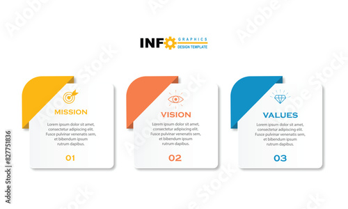 Mission vision and values infographic design template with 3 option