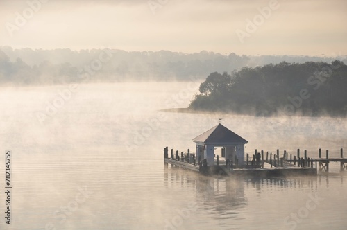mist over lake in the morning