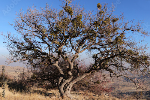 mistletoe, tree, nature, deciduous tree, plant, parasitic, covering, december, environment, mountain, botany, herb, twig, bush, celebration, christmas, growth, medicine, overgrown, leaf, idylli, travel, wilderness, steppe, hanging, uncultivated, agriculture, background, hedge, closeup, beauty, blue, rural scene, winter, sky, outdoors, photo
