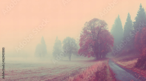 autumn, landscape, road, tree, fog, mist, nature, countryside, rural, fall, scenic, path, peaceful, gold, morning, horizon, light, soft, orange, travel, journey, forest, calmness, serene, field, seasonal, leaf, background, tree, dreamy, calm, romantic, quiet, wander, exploration, farmland, grass, sunlight, pastel, view, natural, morning light, mood, sky, sunrise, earth, environment, wilderness