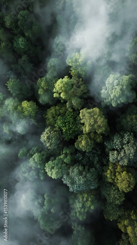 view, lush, outdoors, green, tranquil, beauty, fog, forest, landscape, environment, atmosphere, photo, fresh, top, calm, scenic, canopy, nature, beautiful, foliage, daylight, sunlight, summer, wood, mist, aerial, dense, tree, cloud, sky, vibrant