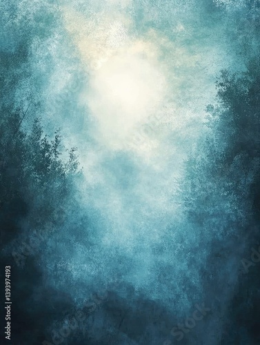 Misty forest scene, ethereal light