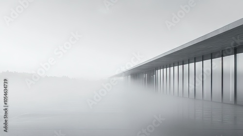 architecture, modern, fog, minimalist, exterior, design, building, glasses, line, reflections, aesthetic, serene, landscape, moody, atmosphere, contemporary, symmetry, structure, urban, space, horizon, quiet, nature, dramatic, light, perspective, detail, smooth, shadow, foggy, scene, environment, artistic, calm, tranquil, beauty, open, geometric, panoramic, view, elegance, stillness