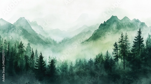 Misty Mountain Landscape: A Serene Watercolor Journey Through Nature's Tranquility