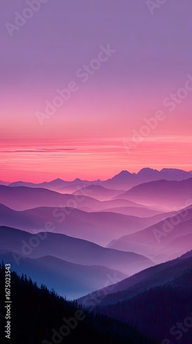 mountain, misty, dawn, sunrise, sunset, colourful, vibrant, hue, pastel, pink, purple, blue, foggy, cloud, landscape, nature, calm, serene, peaceful, dramatic, silhouette, layer, ridge, vale, elevation, horizon, light, colours, gradient, view, perspective, outdoors, scenery, beauty, calmness, scenic, atmosphere, viewpoint, mountainous, mist, hazy, warm, cool