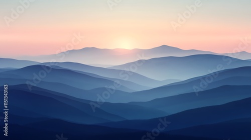 Misty mountain range at sunrise.