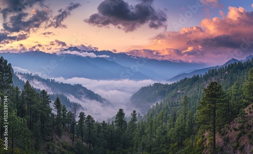 mountain, vale, sunset, mist, cloud, panorama, nature, landscape, photo, scenic, travel, forest, pine, tree, hiking, view, beauty, colours, light, sunrise, sky, cloudscape, mountain, adventure, explore, tour tourism, vacation, wanderlust, amazing, trip, destination