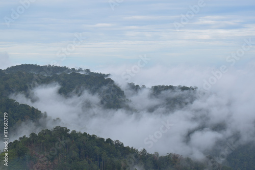 fog, foggy, mist, misty, forest, tropical, mountain, aerial, environment, view, background, travel, nature, wood, tree, landscape, white, cloud, green, park, fantasy, beautiful, natural, hiking, season, tour tourism, weather, postcard, outer space, morning, peak, hill, fairy, afternoon, summit, silence, scenery, copy, chilly, cold, dark, explore, moody, mysterious, wild