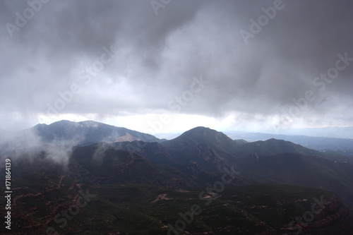 mountain, sky, mountain, landscape, cloud, nature, cloud, sunset, blue, sun, snow, peak, sunrise, vale, view, light, travel, forest, hill, morning, fog, outdoors, montserrat