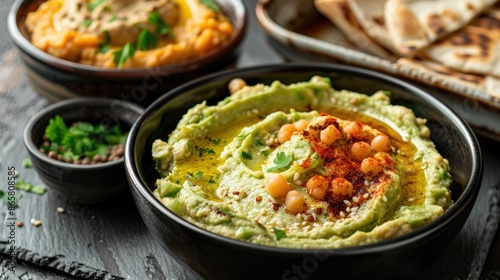 mix, guacamole, hummus, black, bowl, background, food, green, salad, healthy, vegetable, avocado, cookery, snack, lunch, wooden, ingredient, sauce, dip, paste, chickpea, traditional, middle eastern, gold, rustic, section, blended, classic, closeup, copy space, delicious, mashed, mexican, mixed, omega, smashed, widener