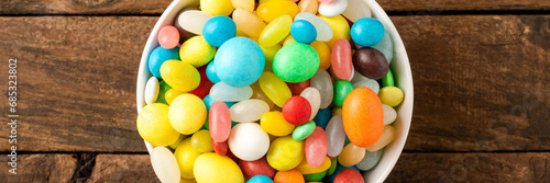 sweet, candy, bowl, confectionery, colourful, background, unhealthy, assorted, children, sugar, dessert, party, top, view, candy, shop, hard, food, junk, snack, birthday, table, wood, wooden, mixed, confection, jelly, bonbon, copy space, copy, space, closeup, up high, overhead, round, calorie, diet, empty, children, delicious, funny, tasty, halloween, many, collection, group, texture, various