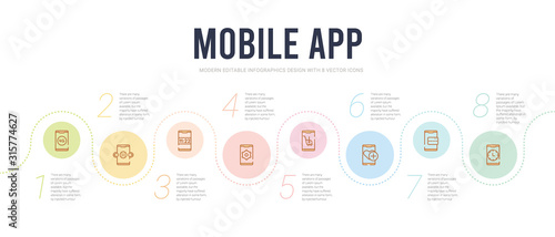 mobile app concept infographic design template. included stop watch, mobile shopping, medical app, purchase, applications, digital clock icons