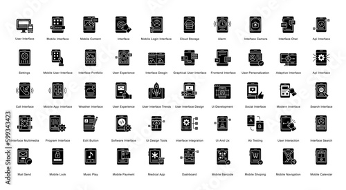 Mobile Interface Glyph Icons API User Experience Glyph Icons in Black