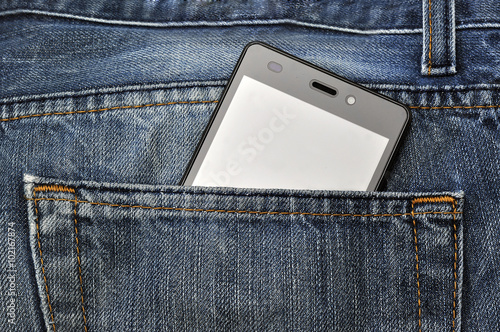 Mobile phone, cellphone in back pocket blue jeans
