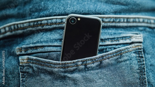 Mobile phone in jeans pocket. Mobile phone sitting in a jeans pocket